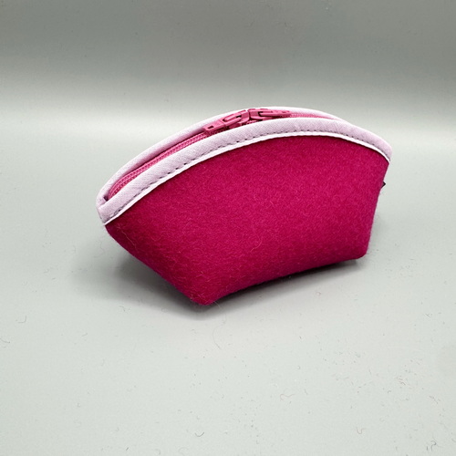A cute little bag approx. 15 x 8 x 7 cm with a “curved” closure.