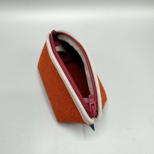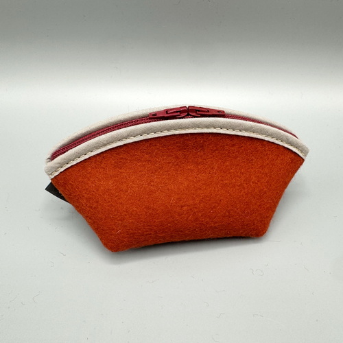 A cute little bag approx. 15 x 8 x 7 cm with a “curved” closure.