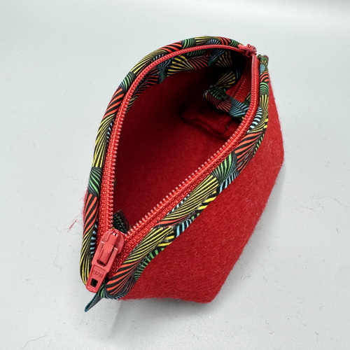 A cute little bag approx. 15 x 8 x 7 cm with a “curved” closure.