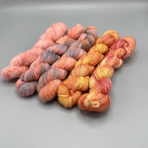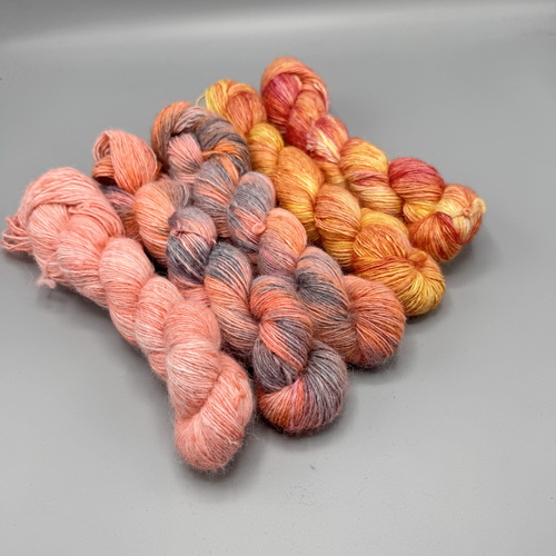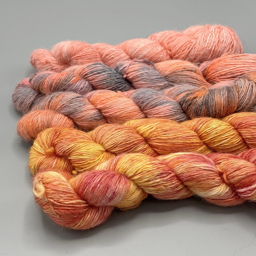 The yarn is dyed by me in small batches with heavy metal-free colors. These colors are not “garish” and can actually always be combined with each other, as the dyes are very harmonious