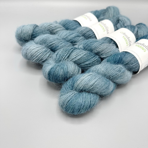 The yarn is dyed by me in small batches with heavy metal-free colors. These colors are not “garish” and can actually always be combined with each other, as the dyes are very harmonious