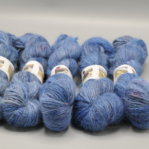 Das Garn wird durch mich in kleinen Chargen mit schwermetallfreien Farben gefärbt. Diese Farben sind nicht „grell“ und können eigentlich immer miteinander kombiniert werden, da die Färbungen sehr harmonisch sind