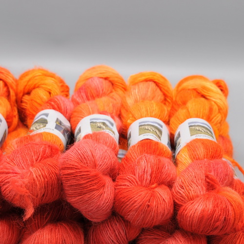 Das Garn wird durch mich in kleinen Chargen mit schwermetallfreien Farben gefärbt. Diese Farben sind nicht „grell“ und können eigentlich immer miteinander kombiniert werden, da die Färbungen sehr harmonisch sind