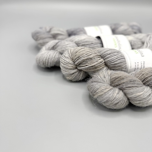 Das Garn wird vorort komplett von den Bauern verarbeitet und veredelt, was sehr häufig einfach nicht der Fall ist. Das Garn wurde von unterschiedlichen Personen gesponnen. Ich achte jedoch darauf, dass ich eine Farbpartie immer von Garn färbe, dass auch von einer Person gesponnen wurde. Daher kommt es vor, dass Grundfarbe und Kontrast unerschiedliche „drillungen“ hat. Beim Verstricken der Grundfarbe darauf zu achten, dass man rechtzeitig einen Folgestrang einfadet, da selbst die Stränge aufgrund der natürlichen Beschaffenheit das Farbpigmet unterschiedlich annimmt. Aber genau das ist der Charme dieses Garns.