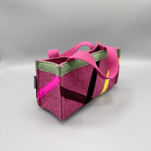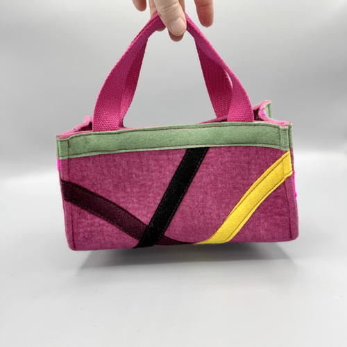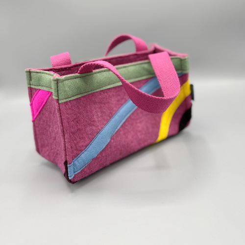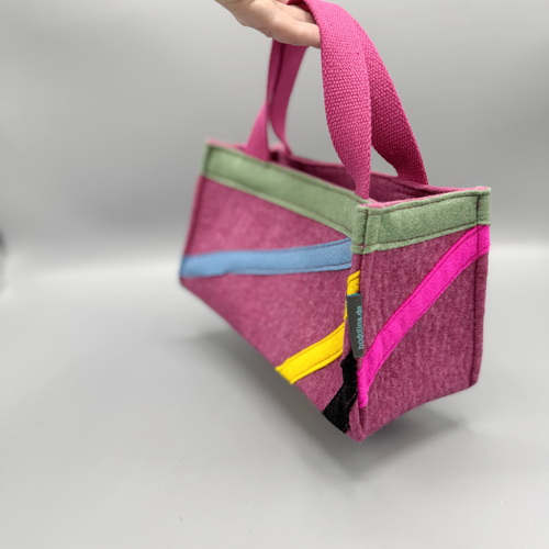 Genäht aus reinem 3 mm Wollfilz mit Streifen aus 1 mm Wollfilz und kurzen Henkeln aus Baumwoll-Gurtband