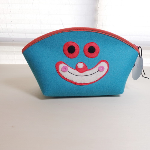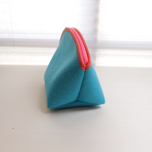 Der Projektbeutel ist aus reinem Wollfilz (2 mm) angefertigt; die obere Kante am Reißverschluss ist mit Schrägband eingefasst.