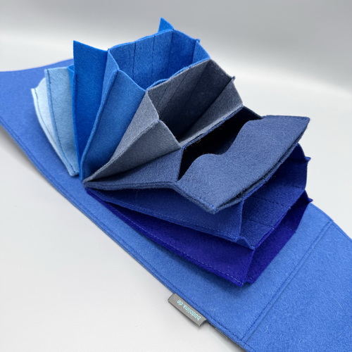 Die Tasche besteht aus hochwertigem Wollfilz aus 100 % Schafwolle. Dieser druckelastische und extrem robuste Filz fühlt sich angenehm an und ist ein reines Naturprodukt.
