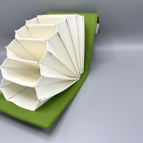 Die Tasche besteht aus hochwertigem Wollfilz aus 100 % Schafwolle. Dieser druckelastische und extrem robuste Filz fühlt sich angenehm an und ist ein reines Naturprodukt.