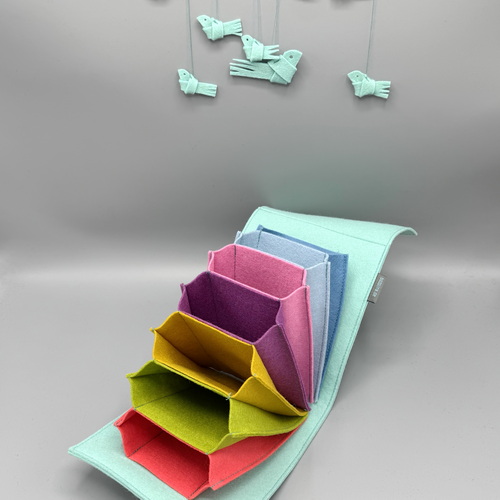 Die Tasche besteht aus hochwertigem Wollfilz aus 100 % Schafwolle. Dieser druckelastische und extrem robuste Filz fühlt sich angenehm an und ist ein reines Naturprodukt.