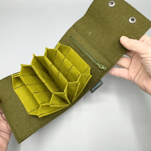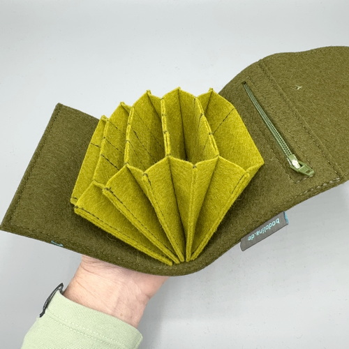 Die Tasche besteht aus hochwertigem Wollfilz aus 100 % Schafwolle. Dieser druckelastische und extrem robuste Filz fühlt sich angenehm an und ist ein reines Naturprodukt.