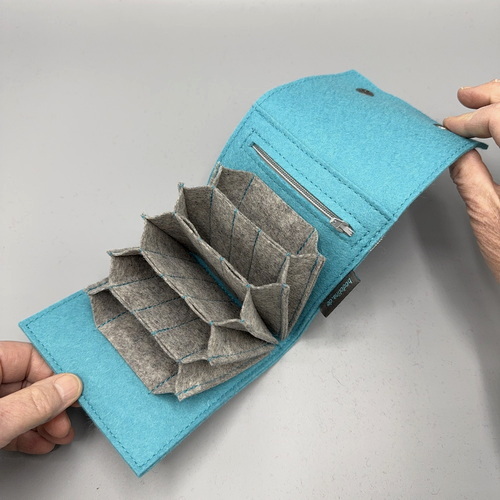 Die Tasche besteht aus hochwertigem Wollfilz aus 100 % Schafwolle. Dieser druckelastische und extrem robuste Filz fühlt sich angenehm an und ist ein reines Naturprodukt.