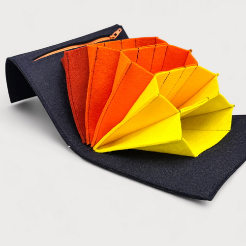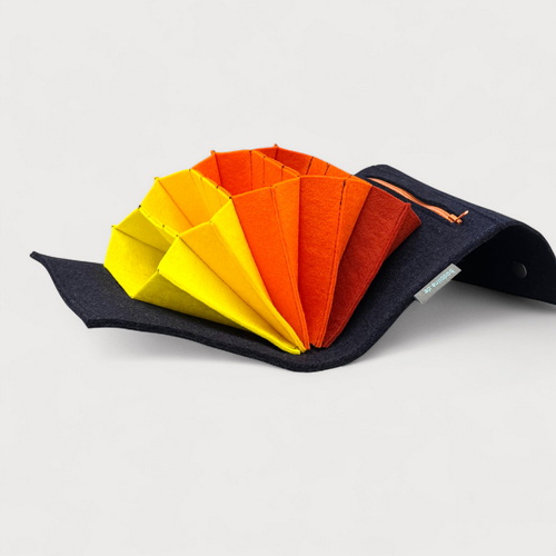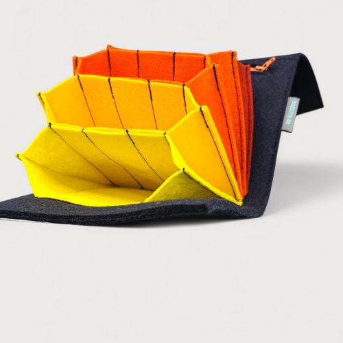 Die Tasche besteht aus hochwertigem Wollfilz aus 100 % Schafwolle. Dieser druckelastische und extrem robuste Filz fühlt sich angenehm an und ist ein reines Naturprodukt.